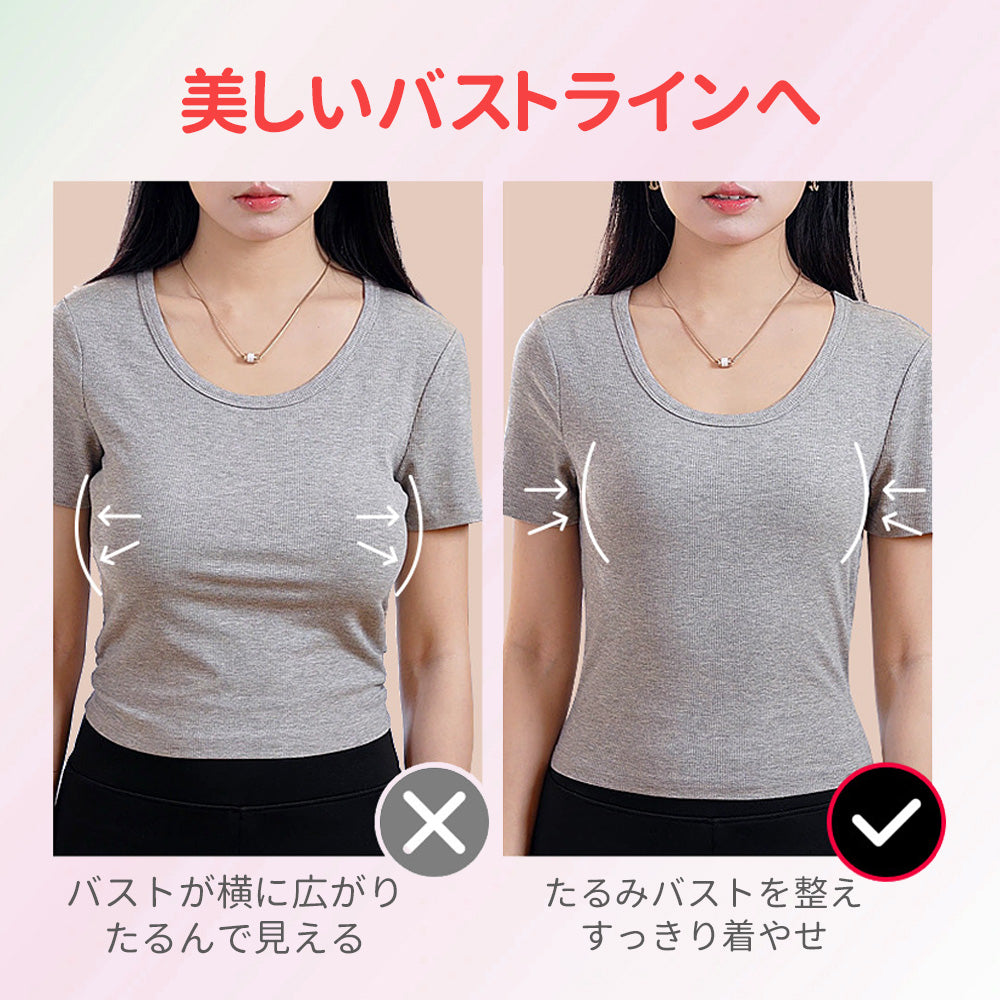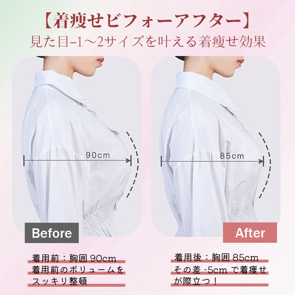 胸のボリュームがすっきり収まりました。今まで太って見えていたニットも、これなら自信を持って着られます。