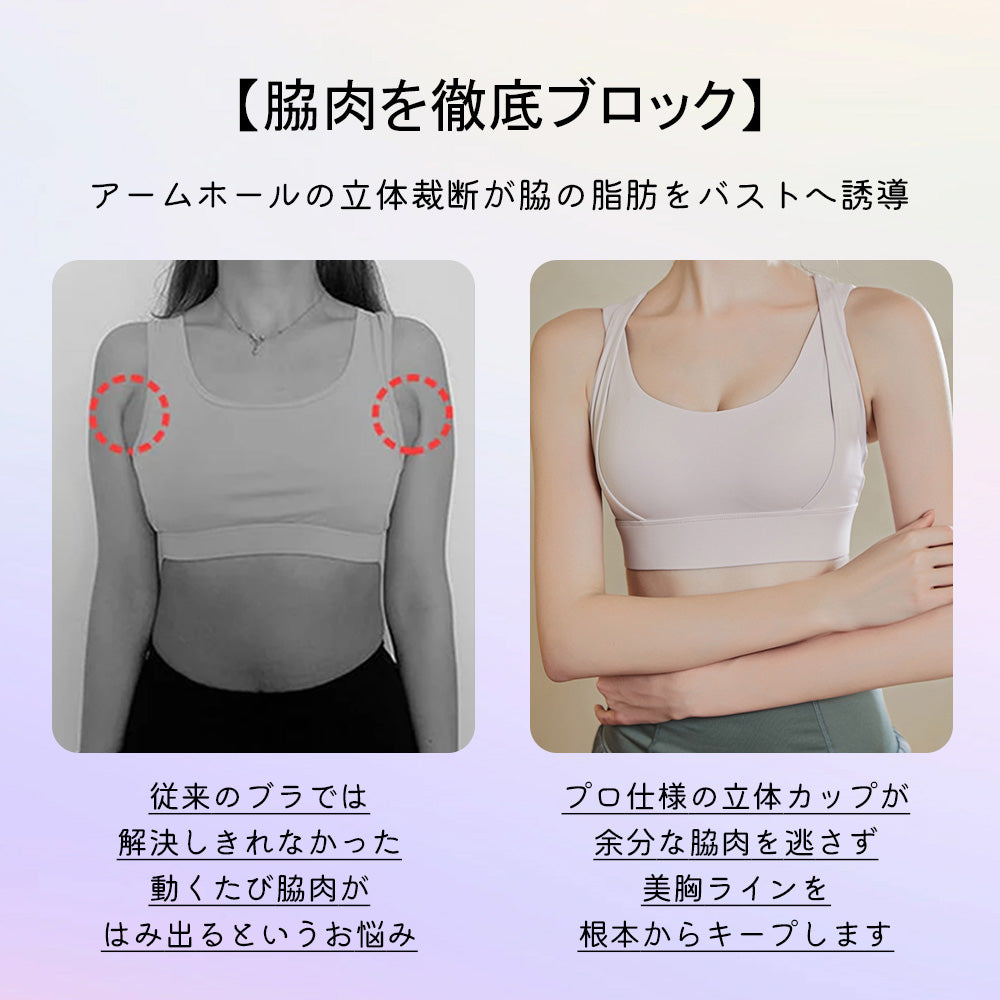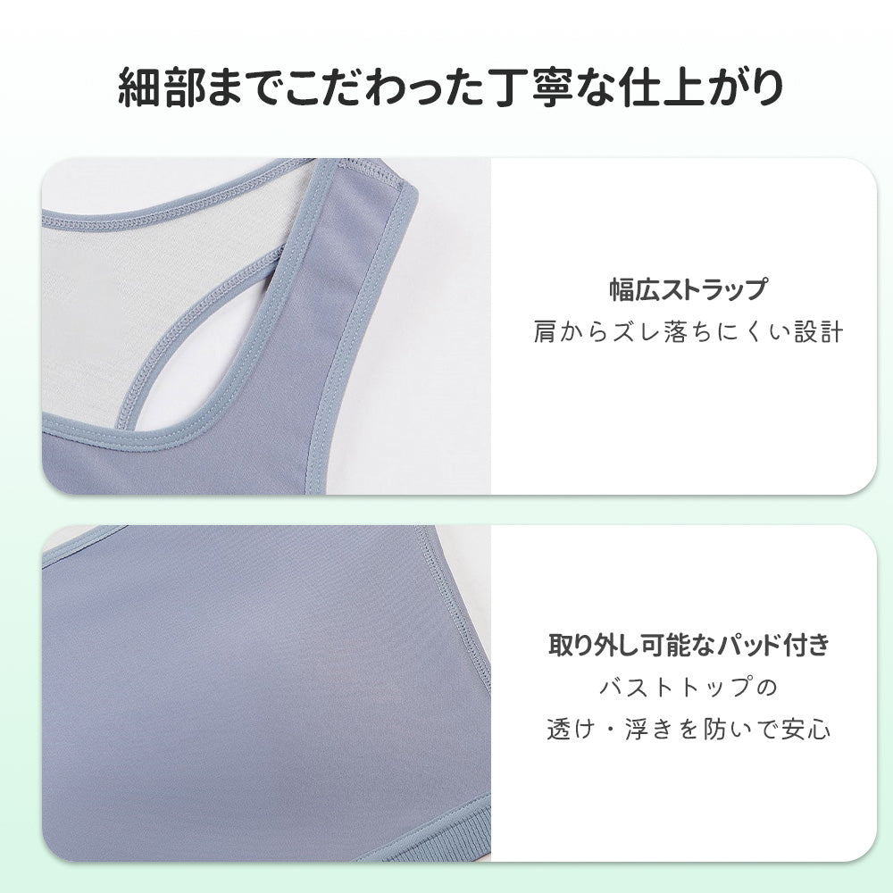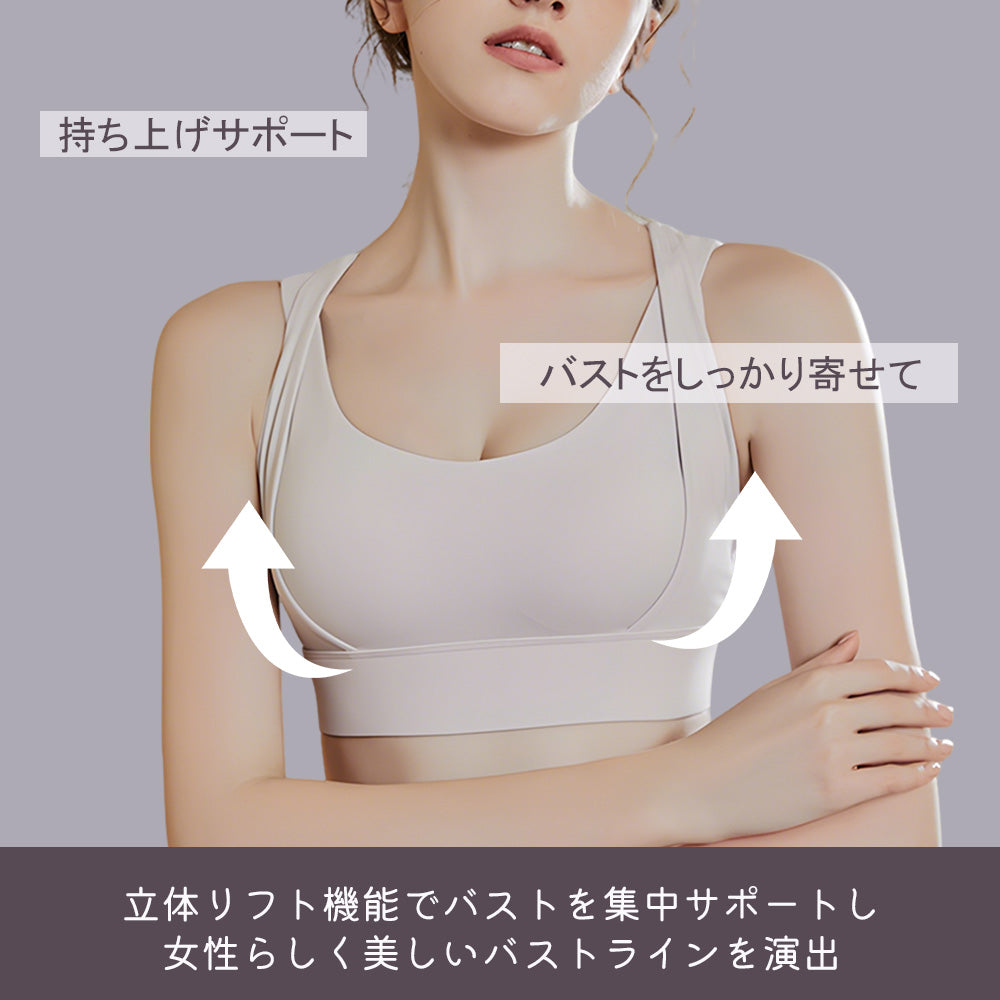 【スポーツブラジャー】寄せ上げ効果で胸型を美しく整える|肌に優しいノンワイヤー設計