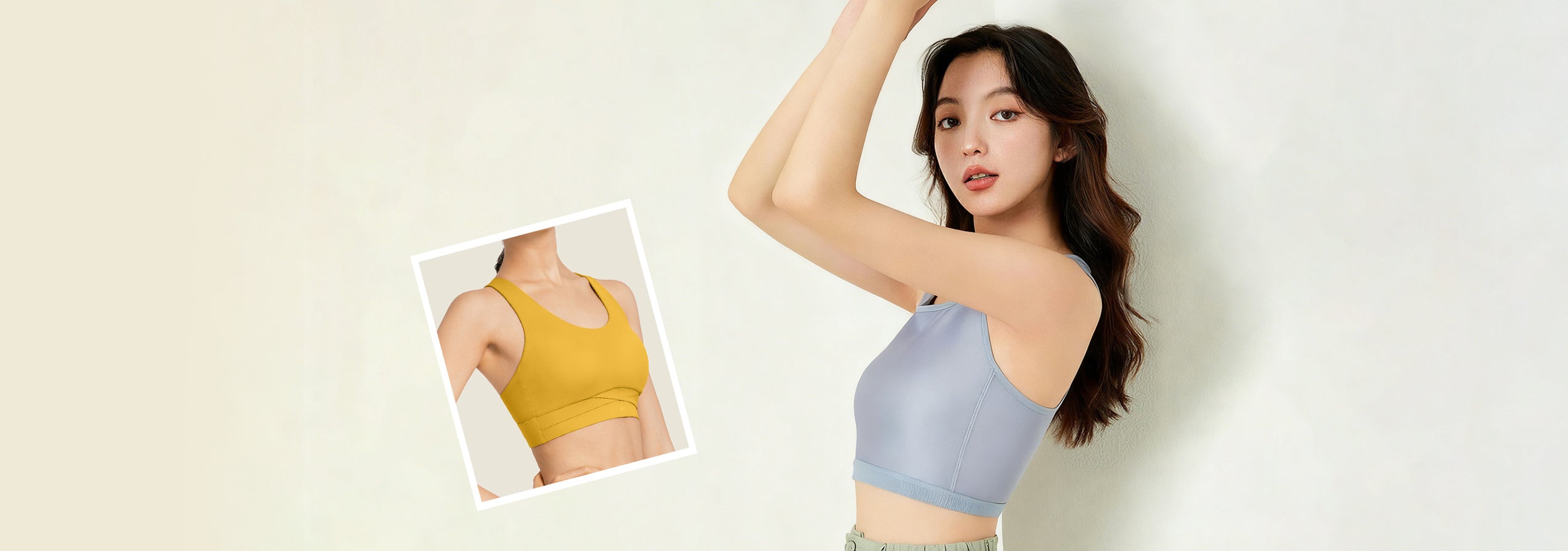 【スポーツブラジャー】寄せ上げ効果で胸型を美しく整える|肌に優しいノンワイヤー設計