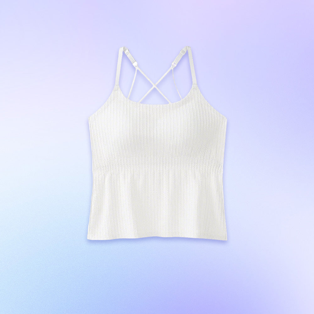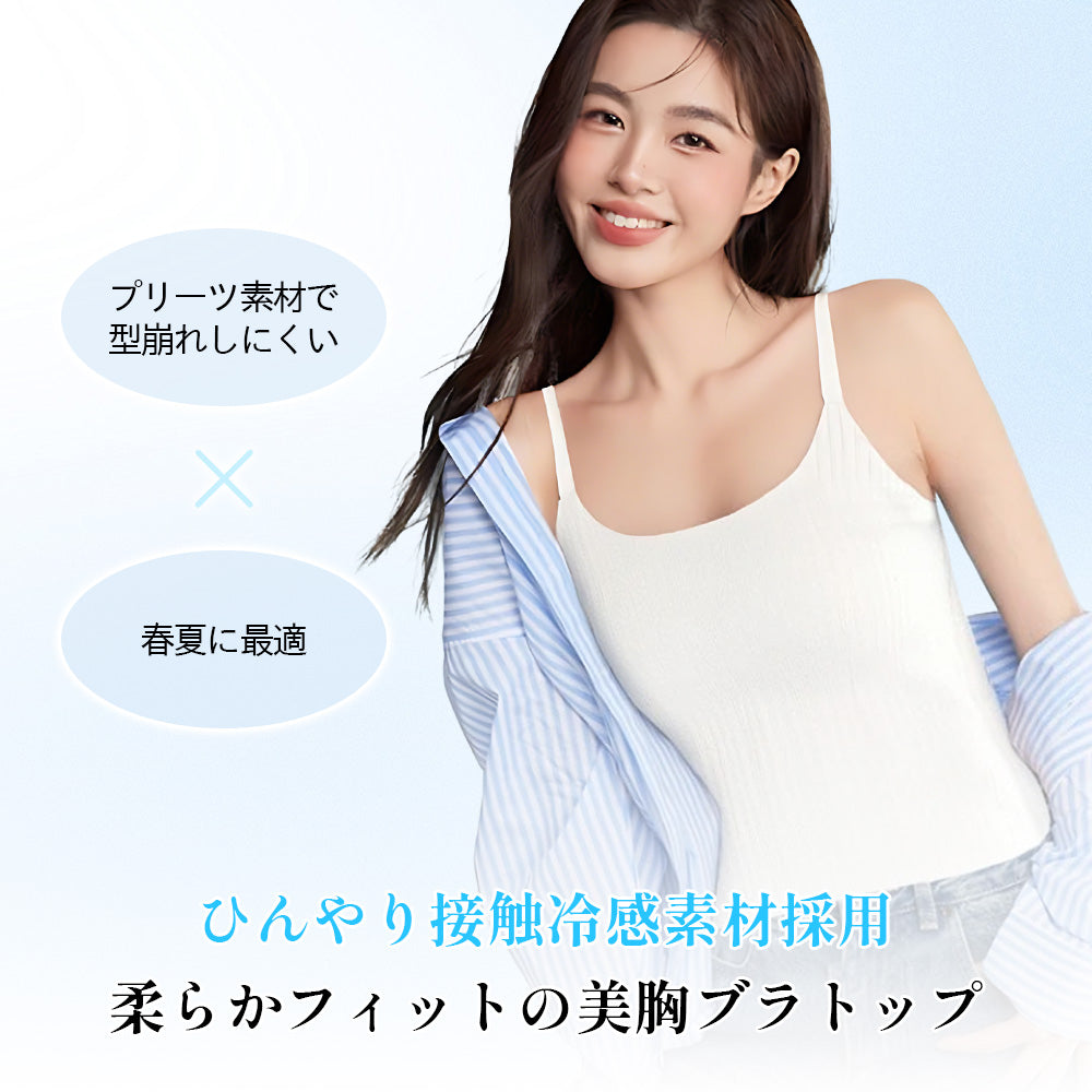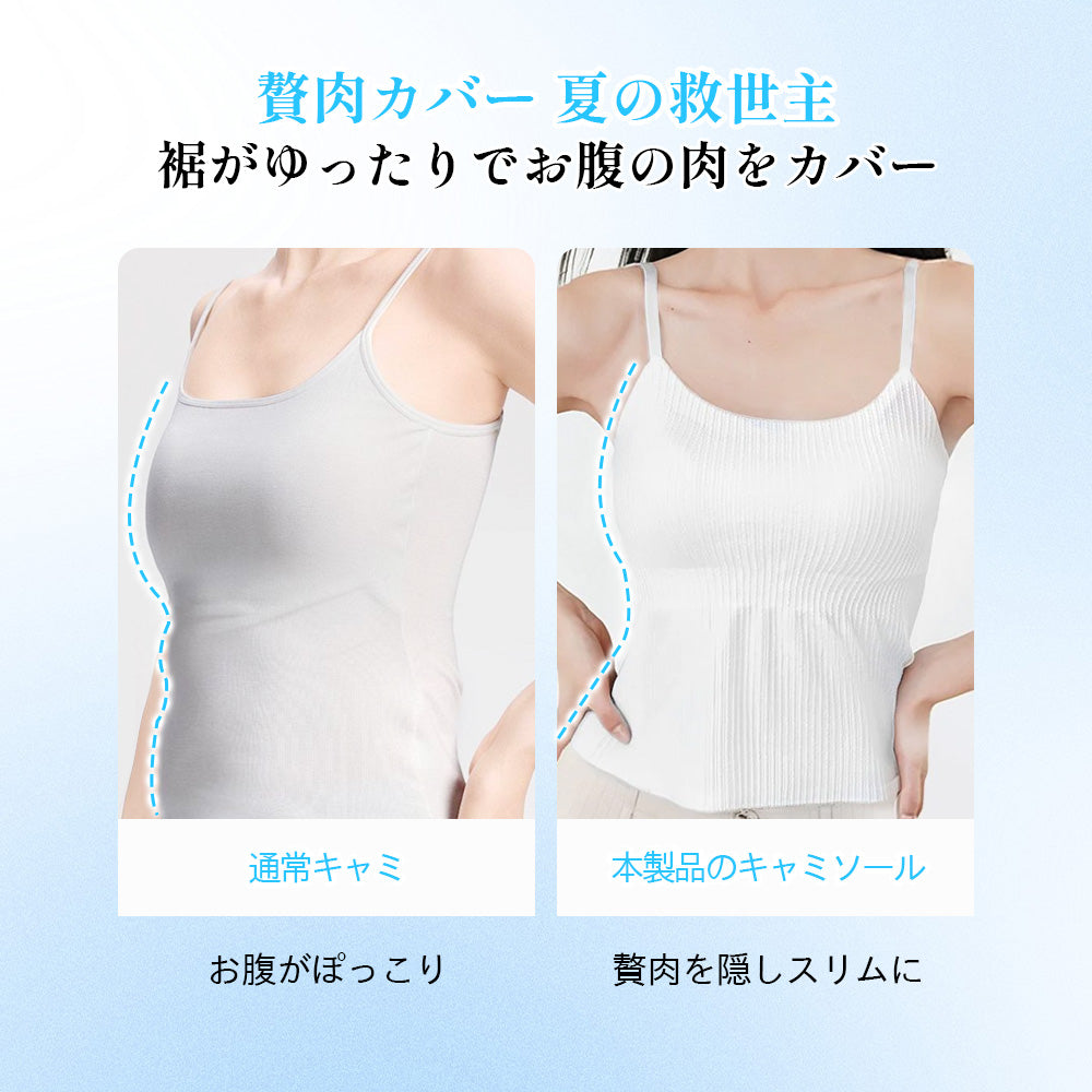 【接触冷感×着痩せ】夏映えキャミ | ウエストシェイプ設計 | ひんやり快適素材 | 裾ゆったり体型カバー | パッド内蔵でブラ不要