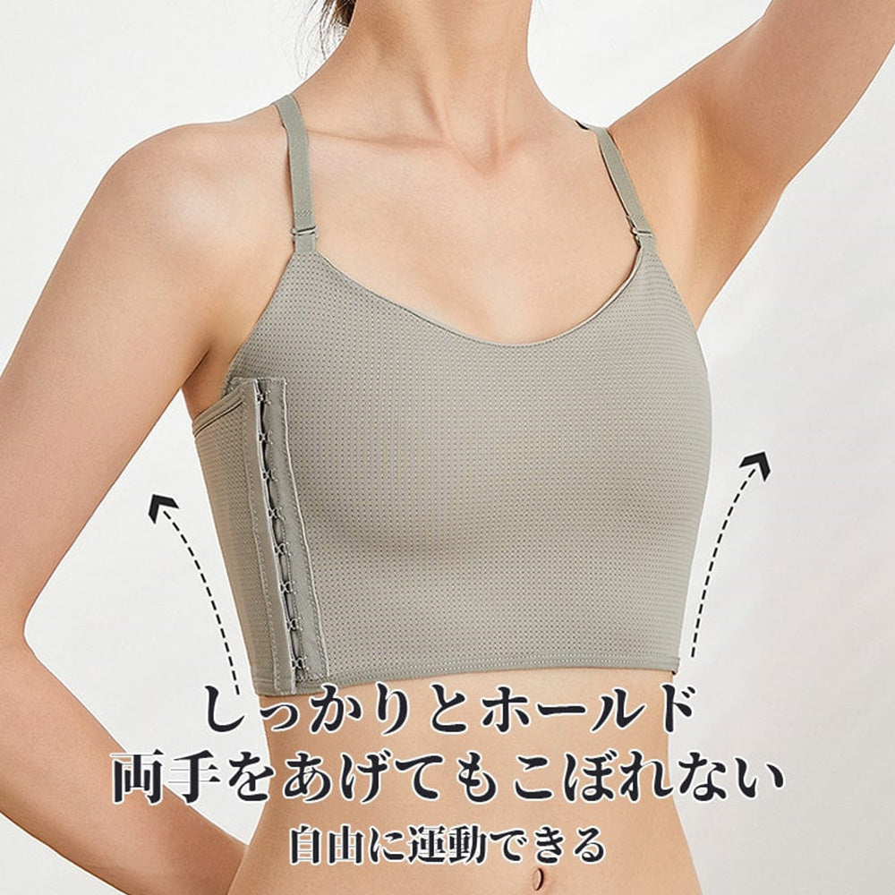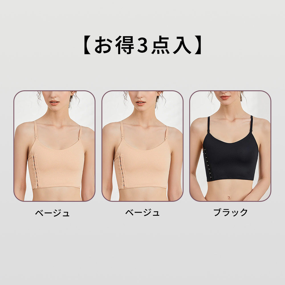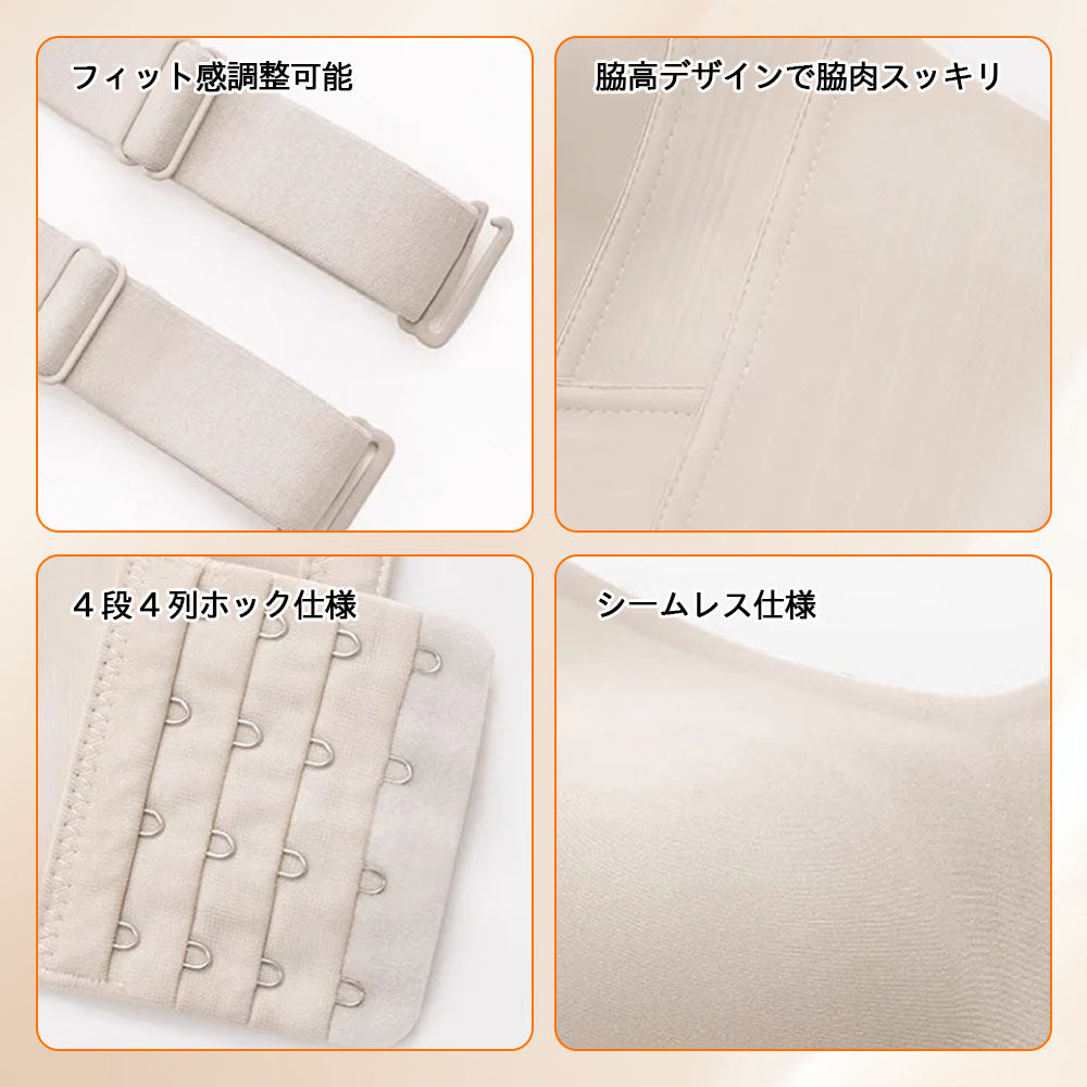 【シームレス補整×クロス補整ブラ】調整ホック仕様でフィット感を自在に調節|背中クロス設計で姿勢を整え、横流れを抑えて自然なバストラインをキープ
