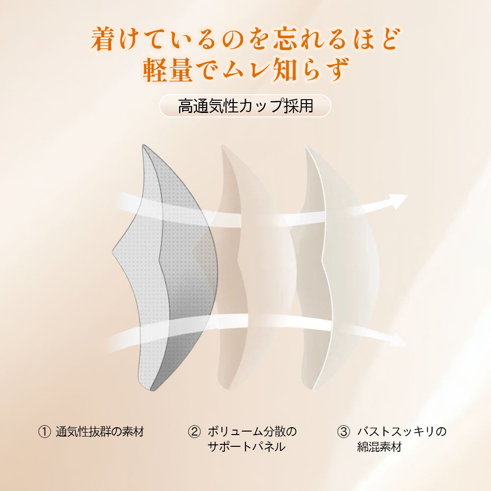 【2枚セット ¥6,690】小さく見せるブラ|約0.3cmの薄型軽量カップで、軽やかな着け心地と高い通気性