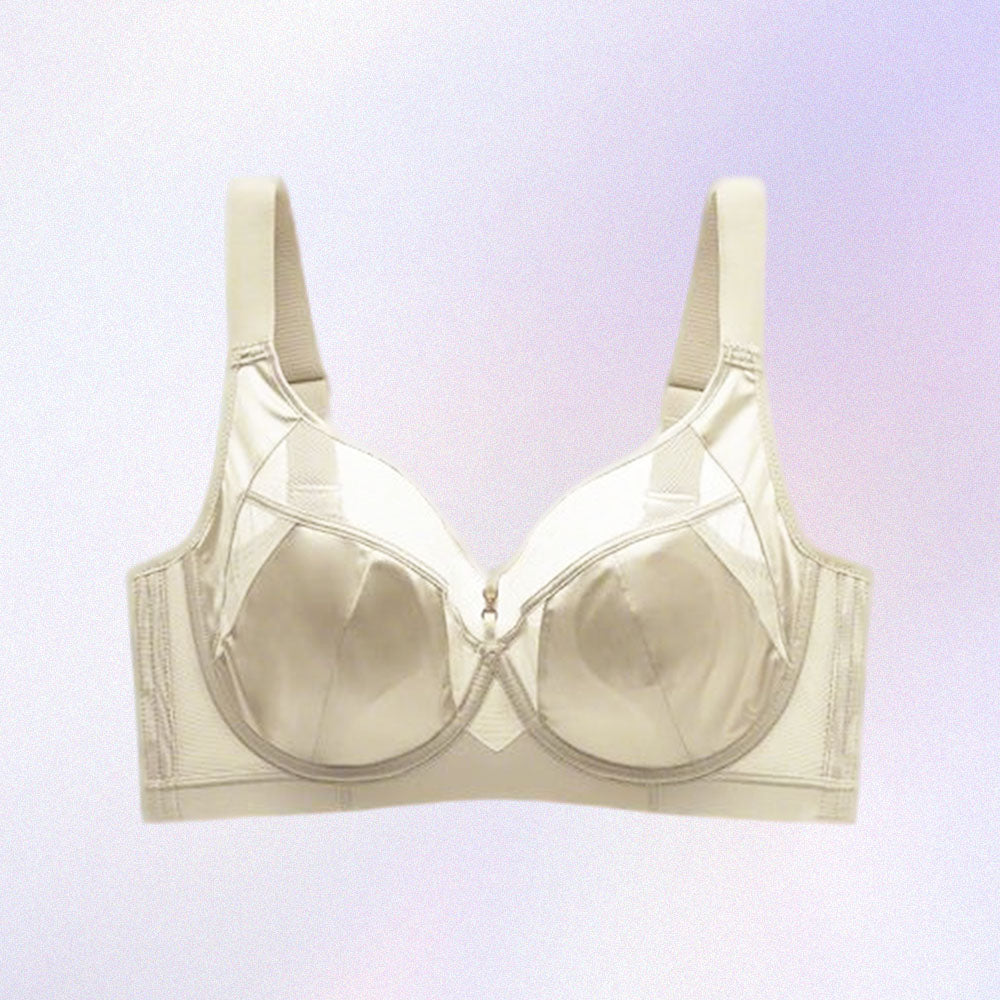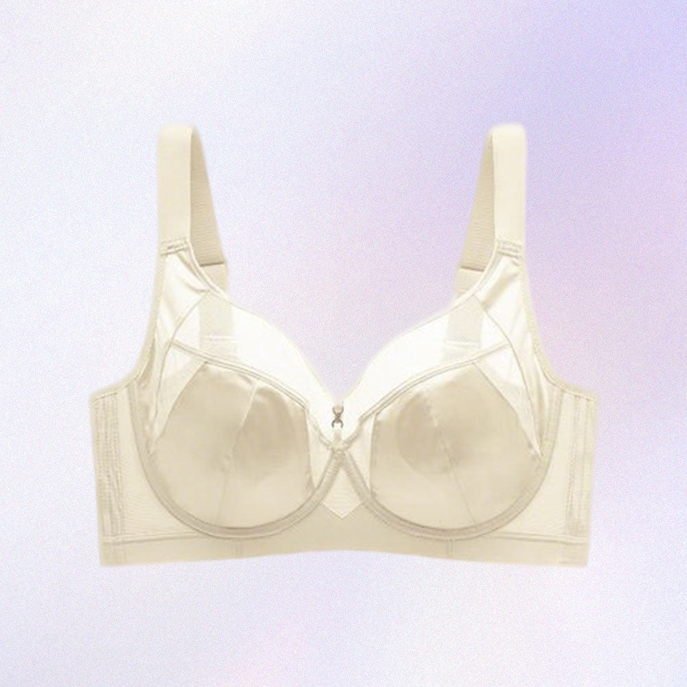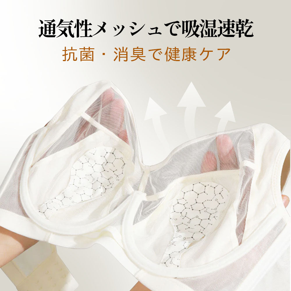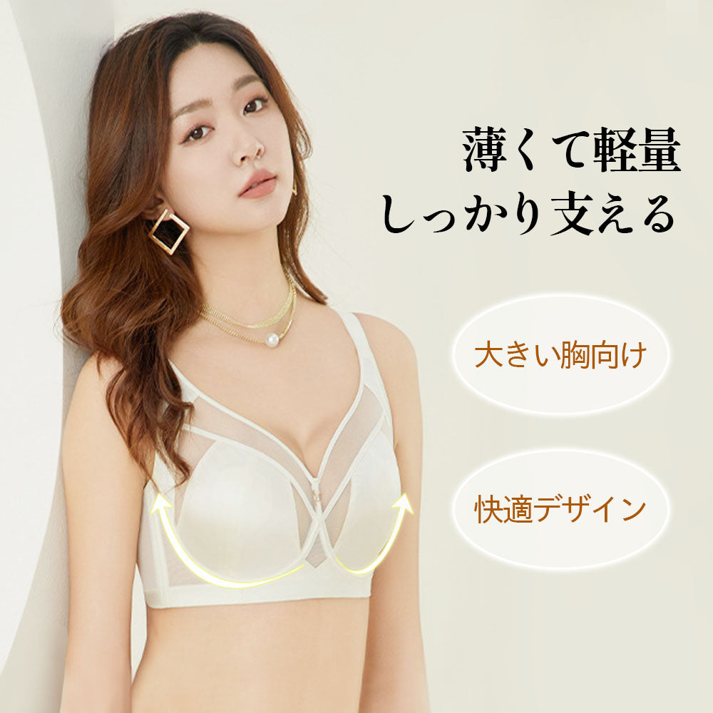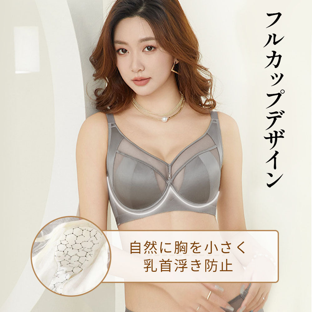 【大胸を小さく見せるブラ】艶やかサテンで上品な光沢|副乳をすっきり寄せてコンパクト|薄手・軽量で快適な着け心地|さらっと爽やかな肌ざわり