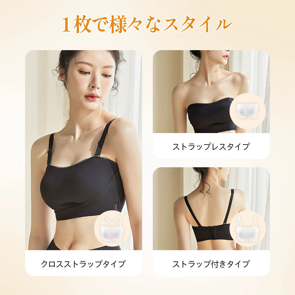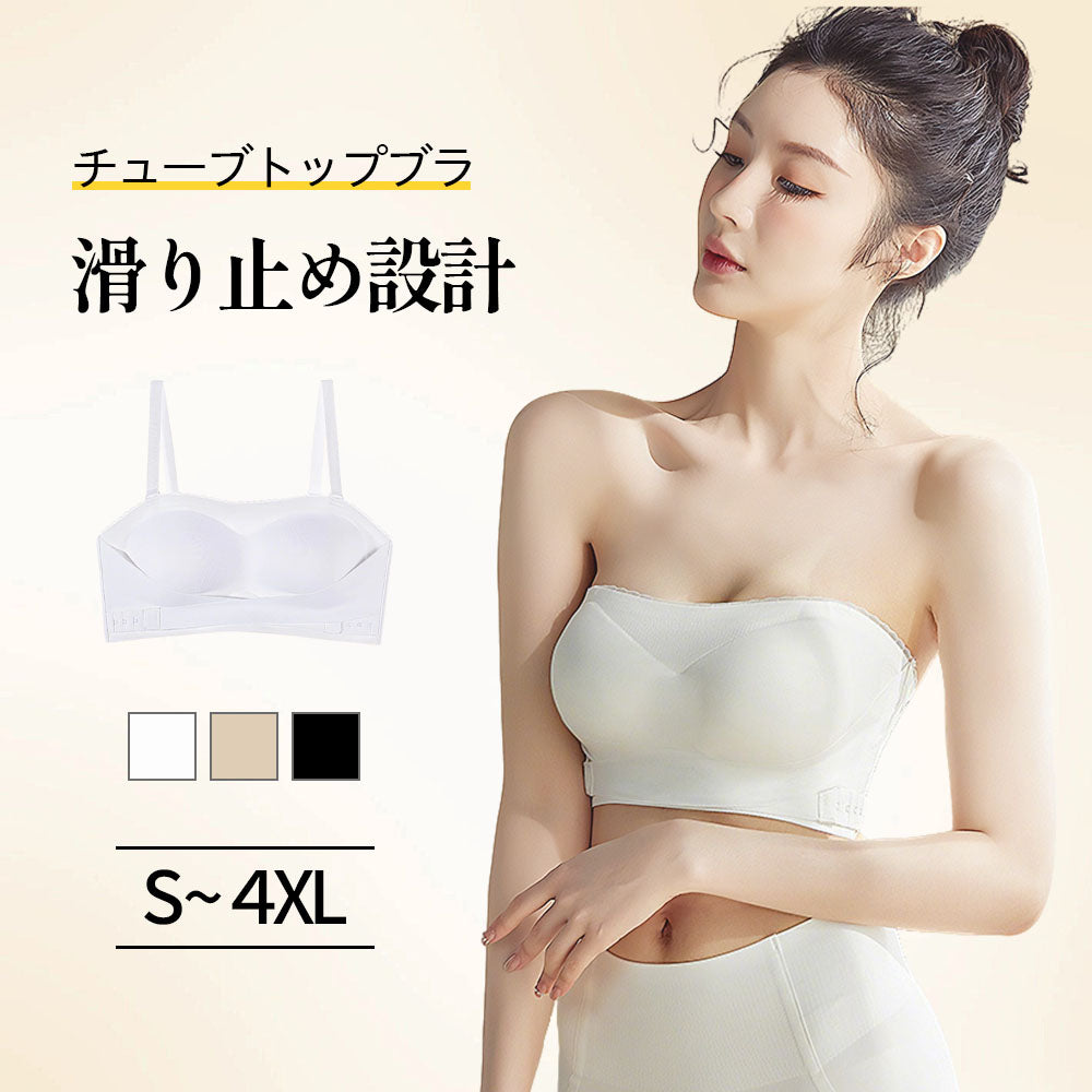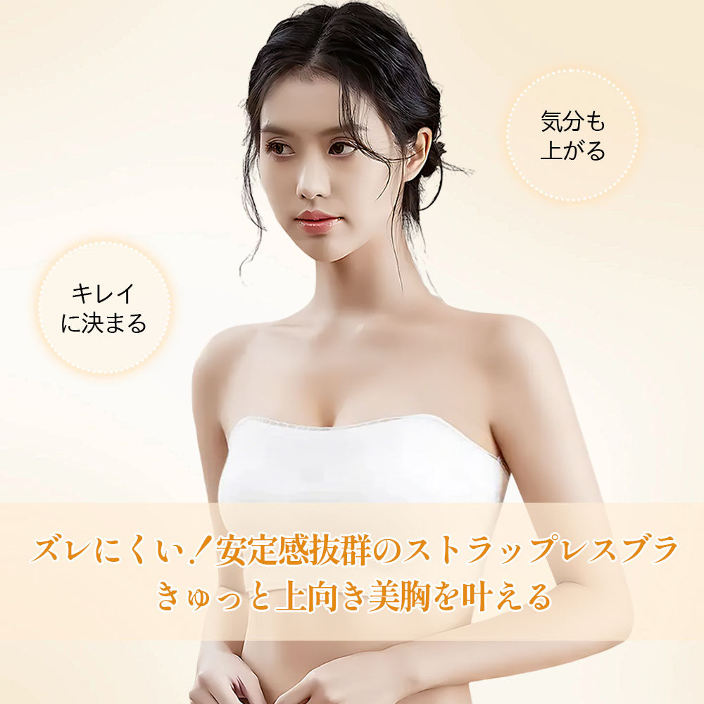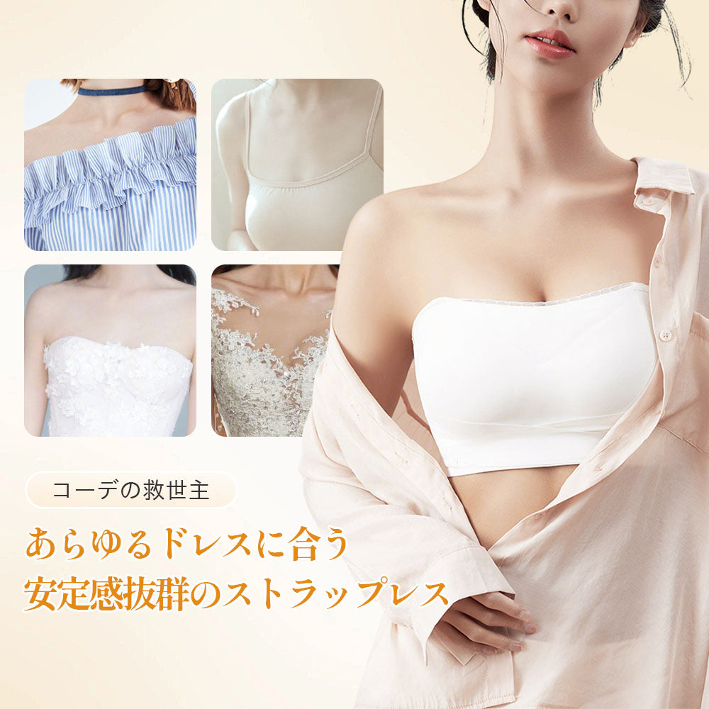 【ズレにくいストラップレス】チューブトップブラ | 肩出し・胸元オープンドレスに最適 | フィット感アップで安定キープ | 新作デザイン登場
