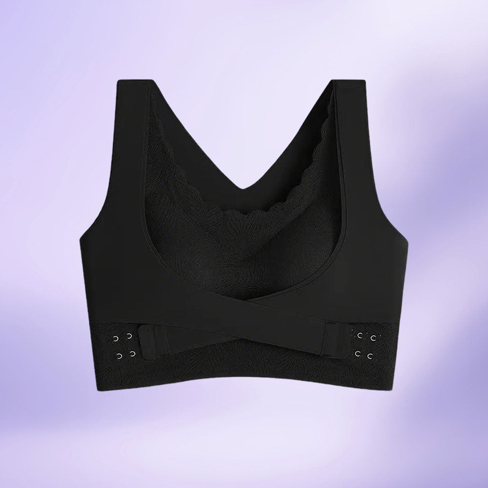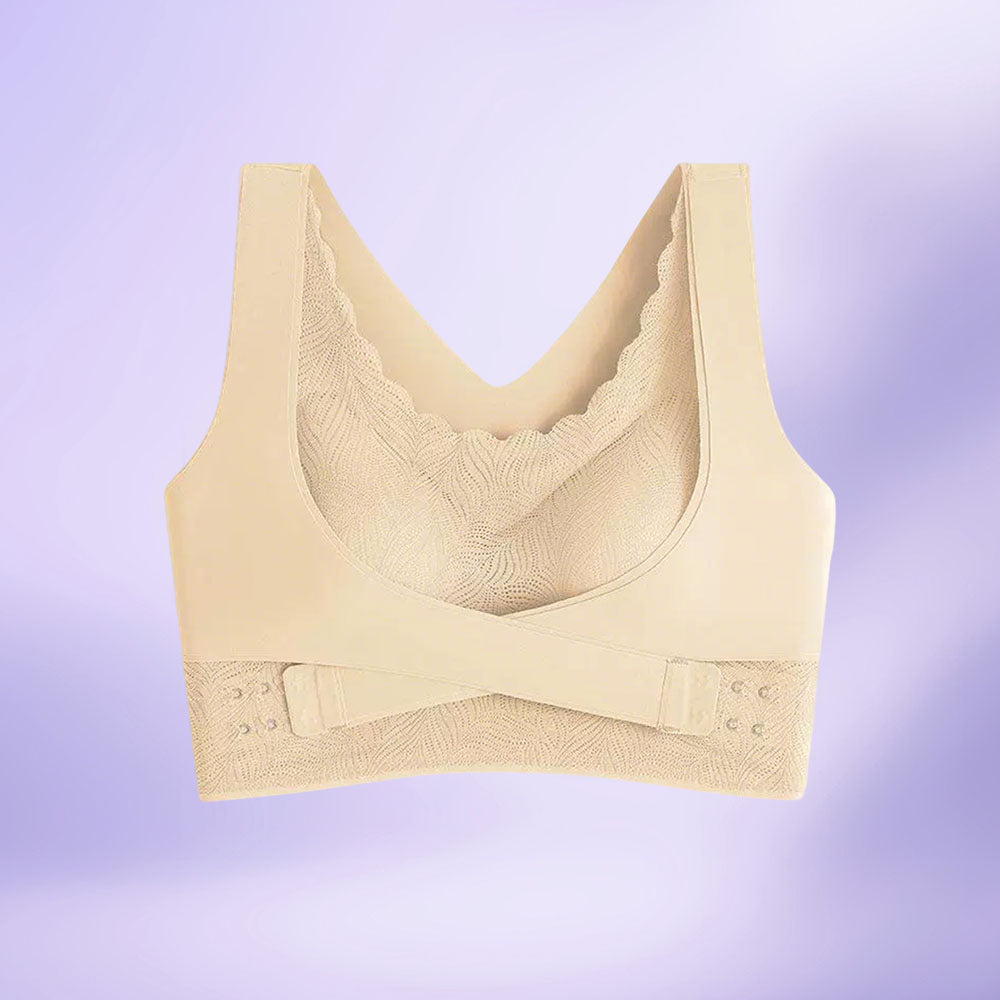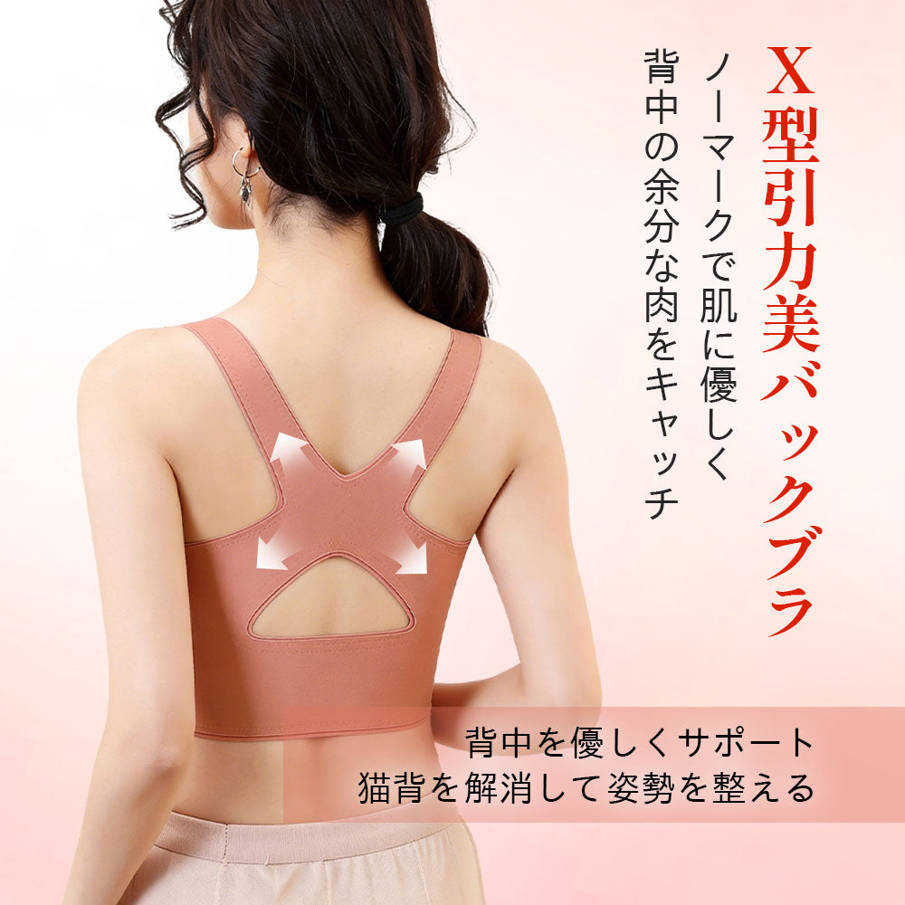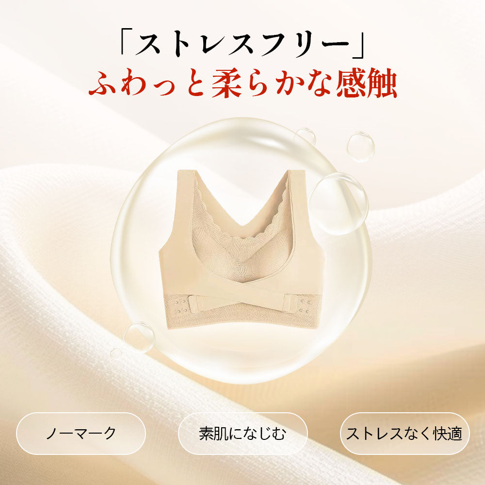 【シームレス補整×クロス補整ブラ】調整ホック仕様でフィット感を自在に調節|背中クロス設計で姿勢を整え、横流れを抑えて自然なバストラインをキープ