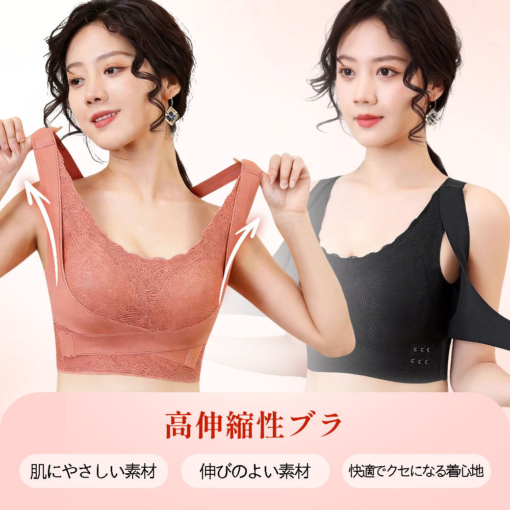 【姿勢サポート】矯正ブラ|昼夜兼用で着用OK|通気性に優れムレにくい|シームレス設計でラクな着け心地|自然にバストラインを整える