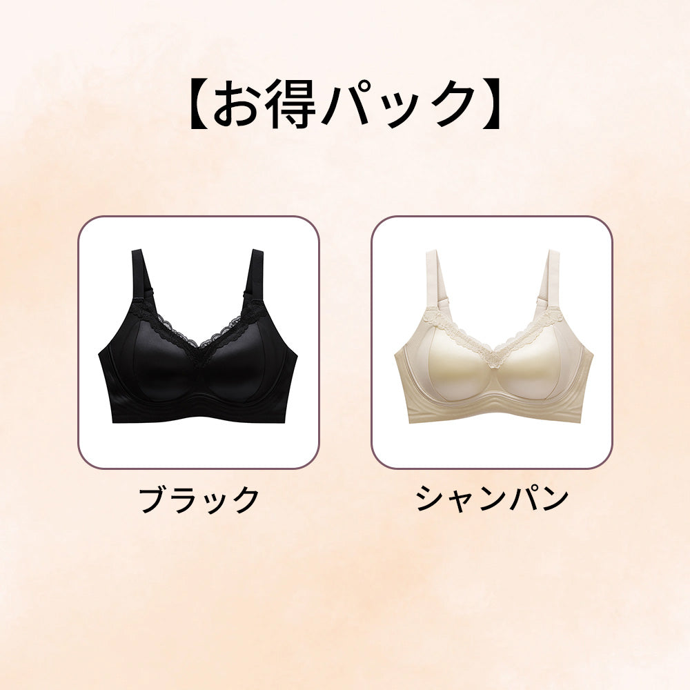 【2枚セットで¥6,790円】レースブラ|ノンワイヤーでもしっかり支え、やさしくフィットして下垂を防ぐ