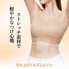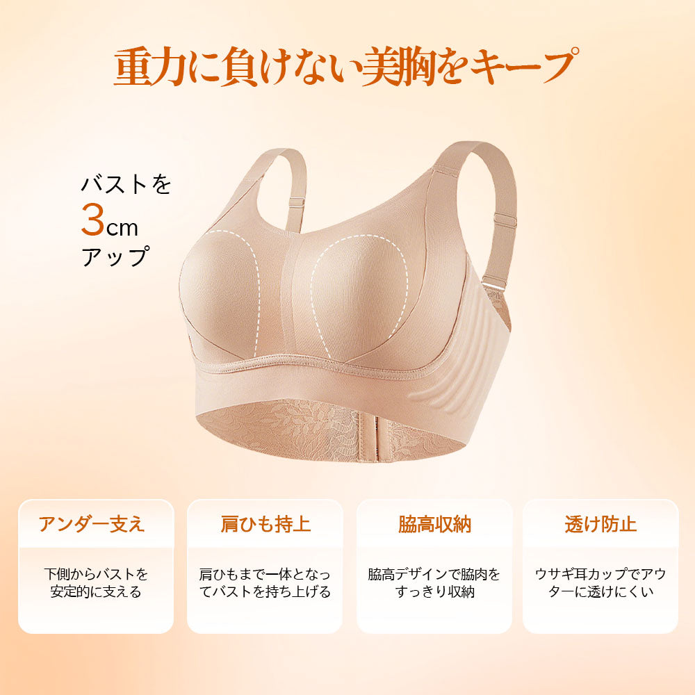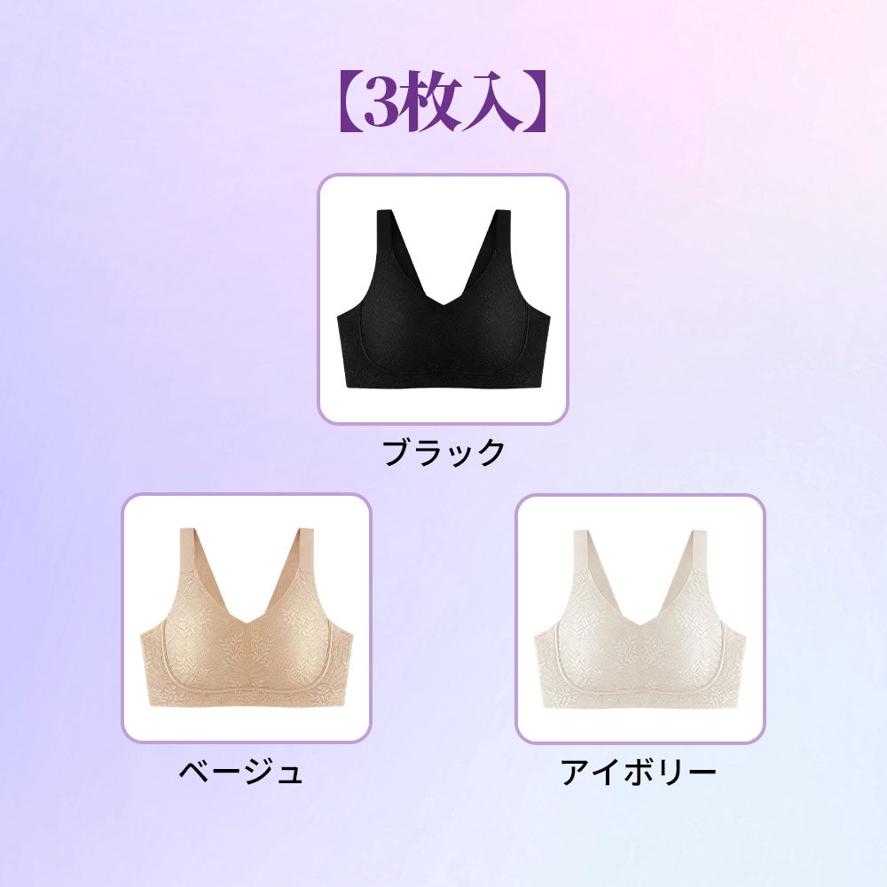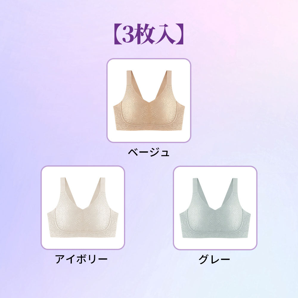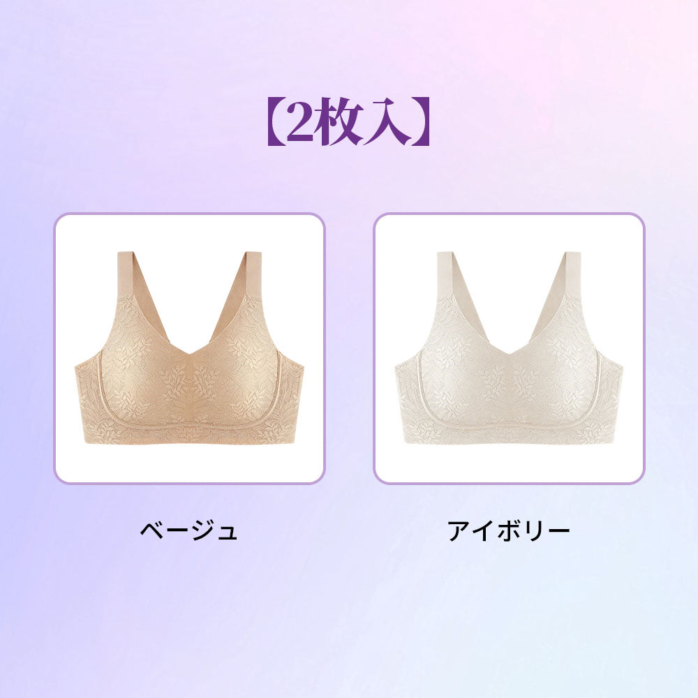 商品詳細:軽やかなレースでバストをやさしく包み込み、自然にリフトしながらすっきりとした印象に。ノンワイヤー設計で締め付け感を抑え、長時間でも快適な着け心地を実現。アウターにひびきにくく、胸を小さく見せたい方におすすめのブラです。