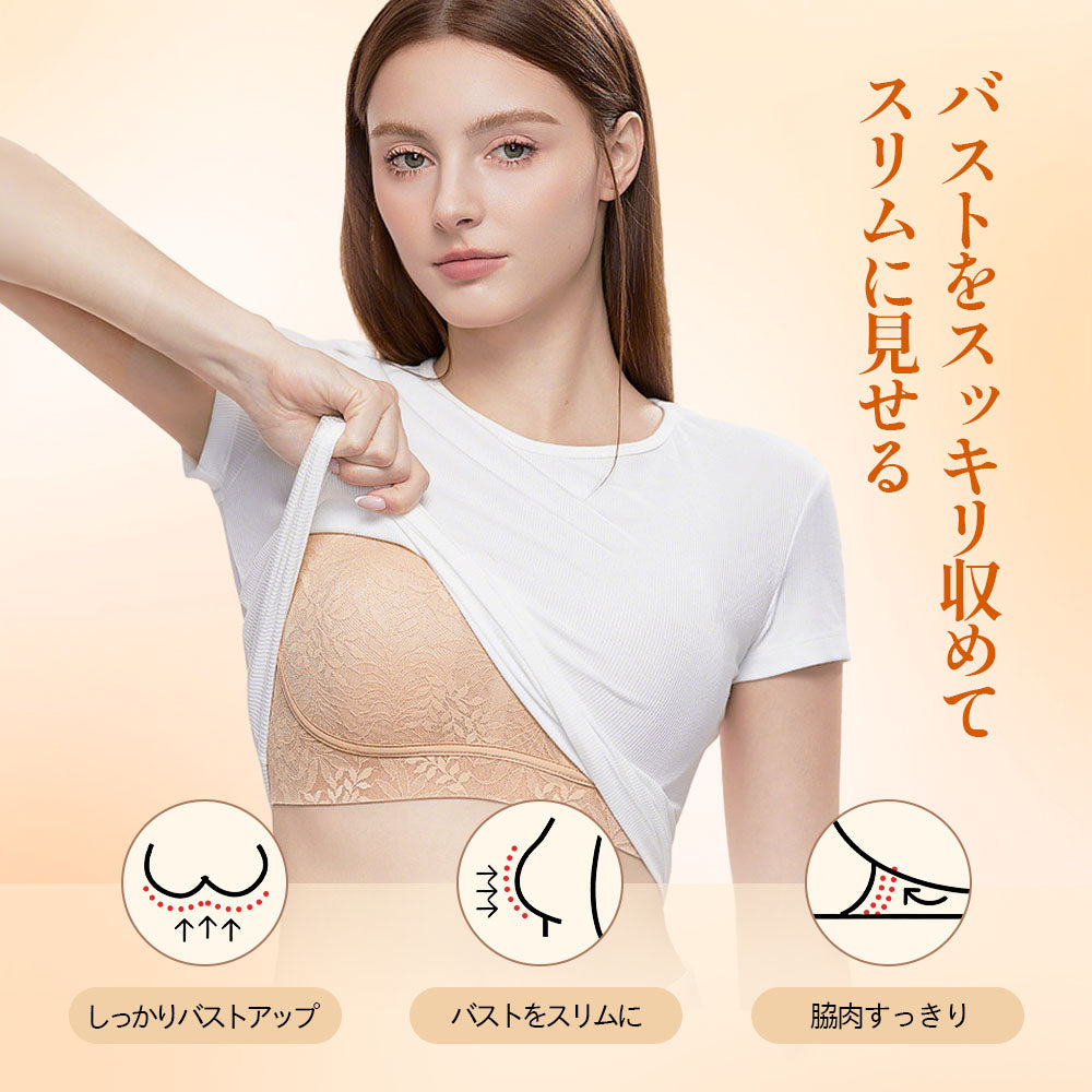【胸を小さく見せる】レースブラ|軽やかなレースでリフトアップ|バストラインをすっきり整える|美しいシルエット|軽い着け心地