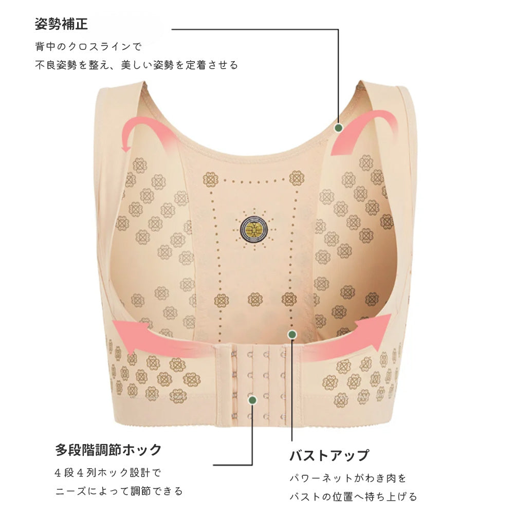 【猫背矯正ベルト】フロントホック仕様で着脱ラクラク | 脇肉をしっかり寄せて持ち上げ、自然なバストアップを実現