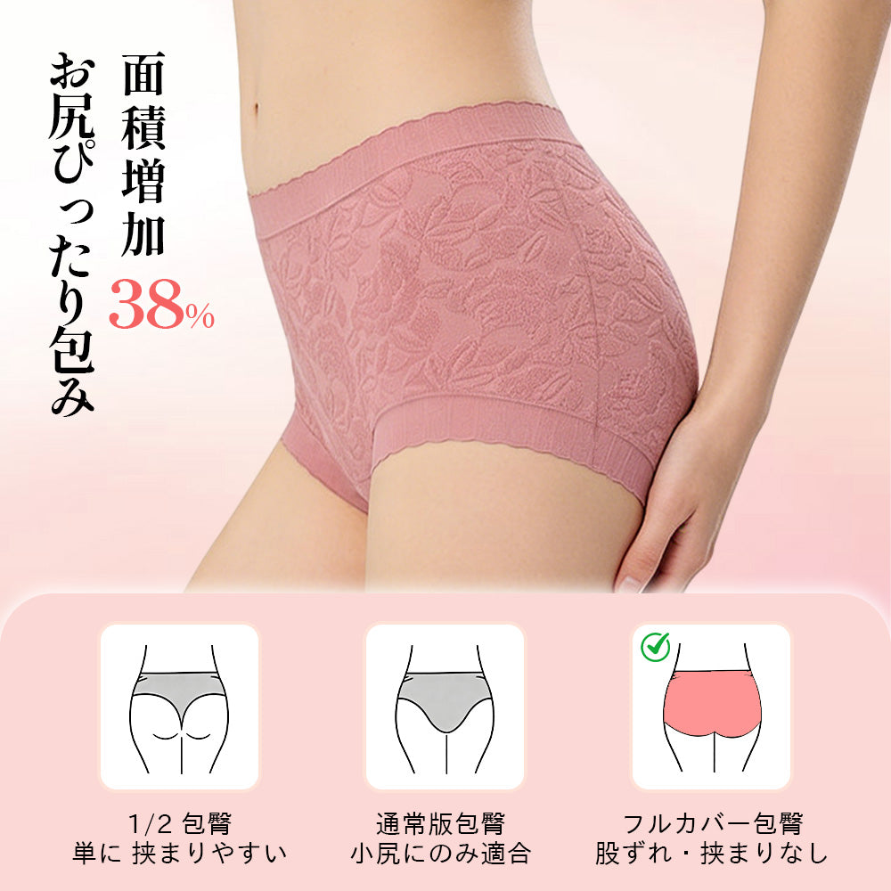 【無縫製・親肌抗菌コットン】| 食い込みにくいハイウエスト設計 | 締め付け感を抑えた快適フィットショーツ
