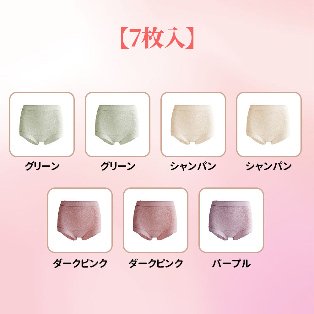 商品詳細:綿92%のソフトなジャカード素材を採用し、なめらかな肌触りを実現。ヒップ全体を包み込む立体設計で食い込みにくく、長時間でも快適なはき心地です。綿100%の18cmロングクロッチがムレを抑え、敏感肌の方にもやさしく使えます。