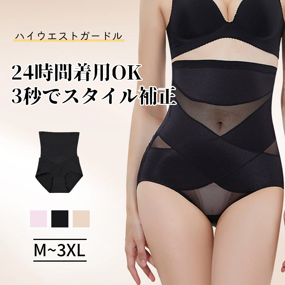 【ハイウエストガードル】後開き設計でトイレもラクラク、 24時間快適に着用でき、ハイウエストでお腹すっきり