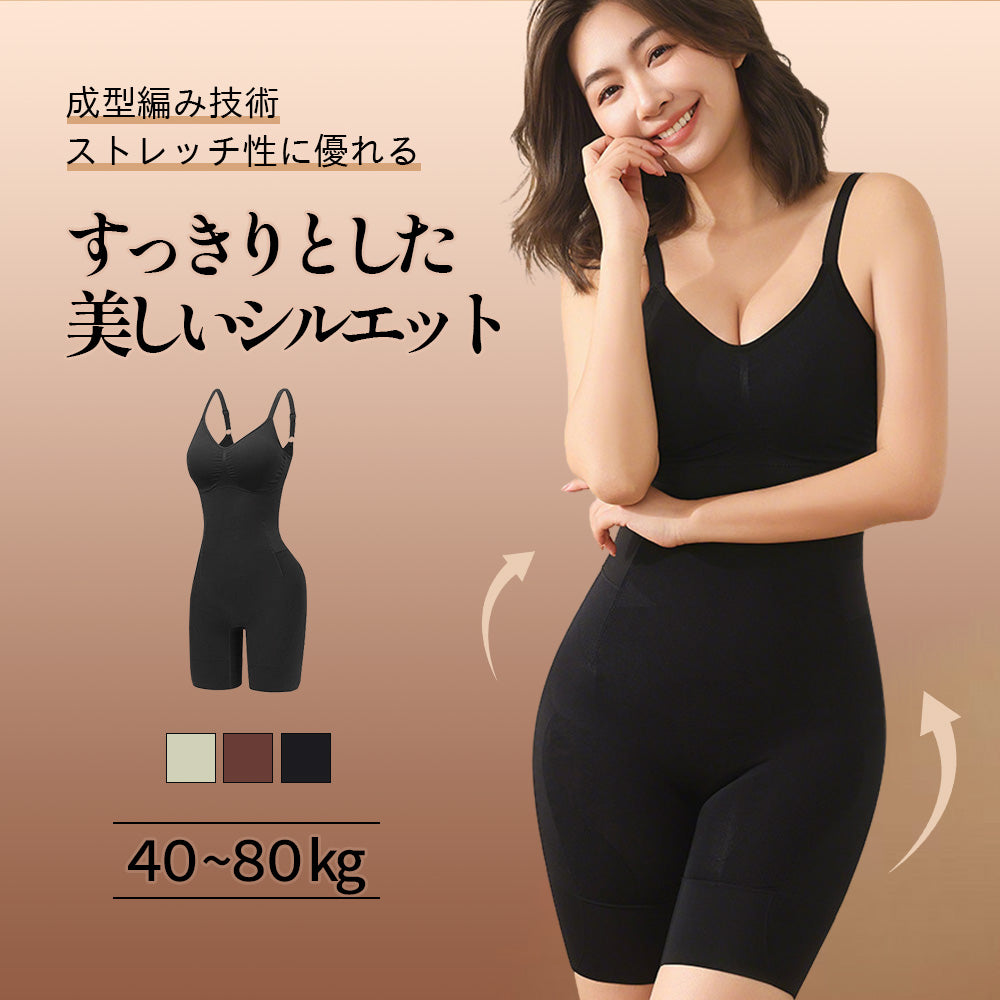 【一枚で4役ボディスーツ】成型編みでしっかり補正|お腹引き締め|ヒップアップ|ウエストすっきり|脚長見せ シルエット美人へ