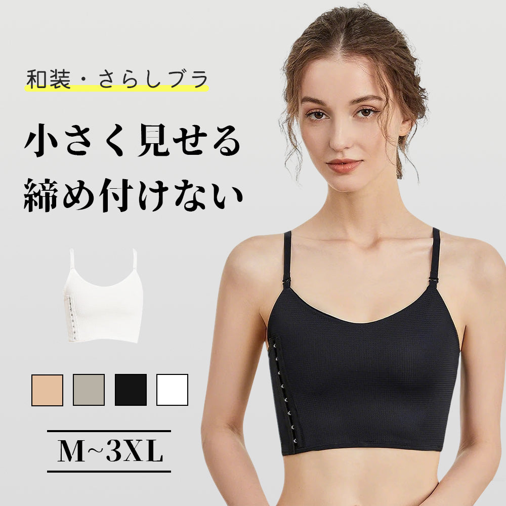 【和装・さらしブラ】小さく見せる | 胸をきれいに整え、すっきりとしたシルエットに、サイドホック仕様で着脱が非常に簡単